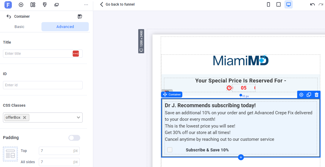 Now let’s add a container that promotes the subscription offer and contains the checkbox.