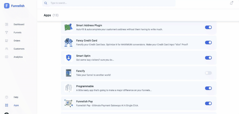 Go to Funnelish → Global Apps