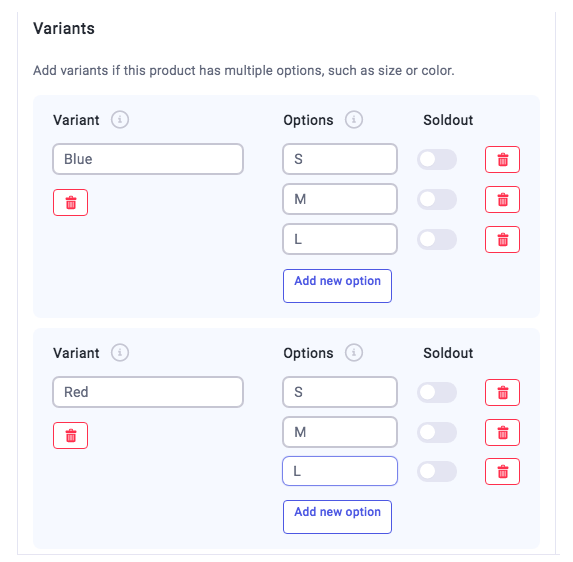 - Variants are required for products with multiple options