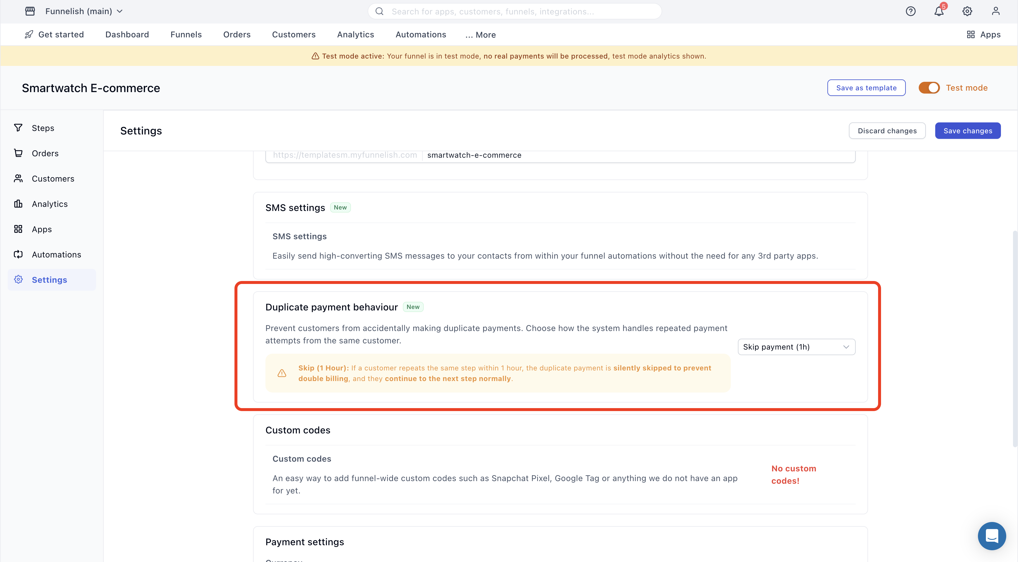 We’ve just rolled out the Duplicate Payment Behaviour setting you’ve been requesting. This gives you complete flexibility to choose exactly how duplicate transactions are handled on a funnel-by-funnel basis.