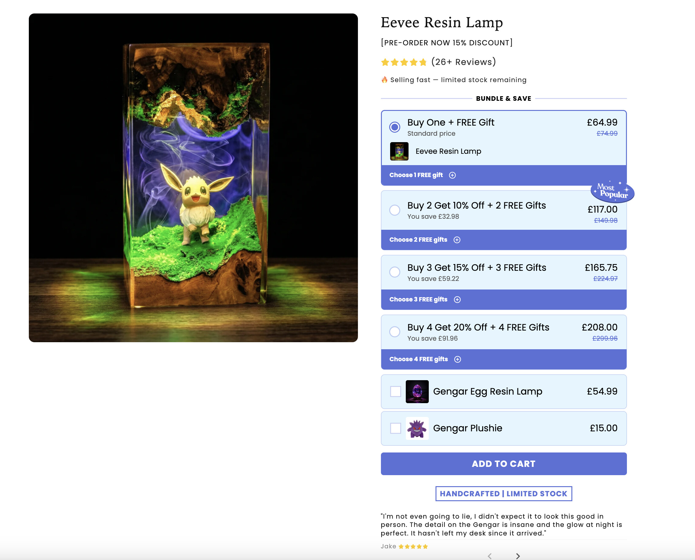 I stumbled across this page for a Bulbasaur Resin Lamp. The product itself is actually awesome. Super niche, highly visual, great for ads. But the landing page? It’s a masterclass in how to accidentally burn your ad spend.
