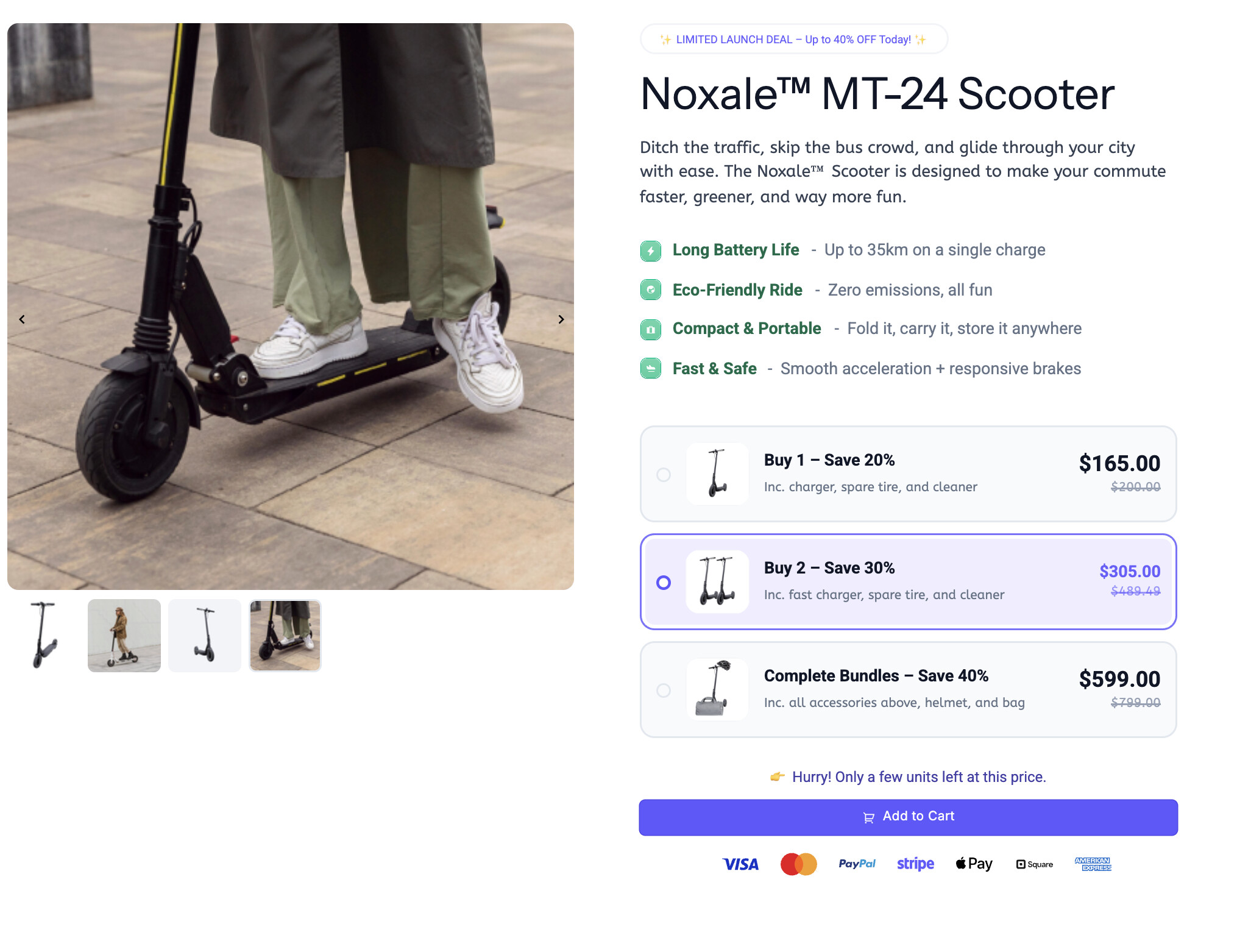 Clear, immediate incentives: The tiered pricing and discounts (Save 20%, Save 30%) are baked right into the selectable boxes. They click the tier they want, click Add to Cart, and they are instantly at checkout. No homework required!