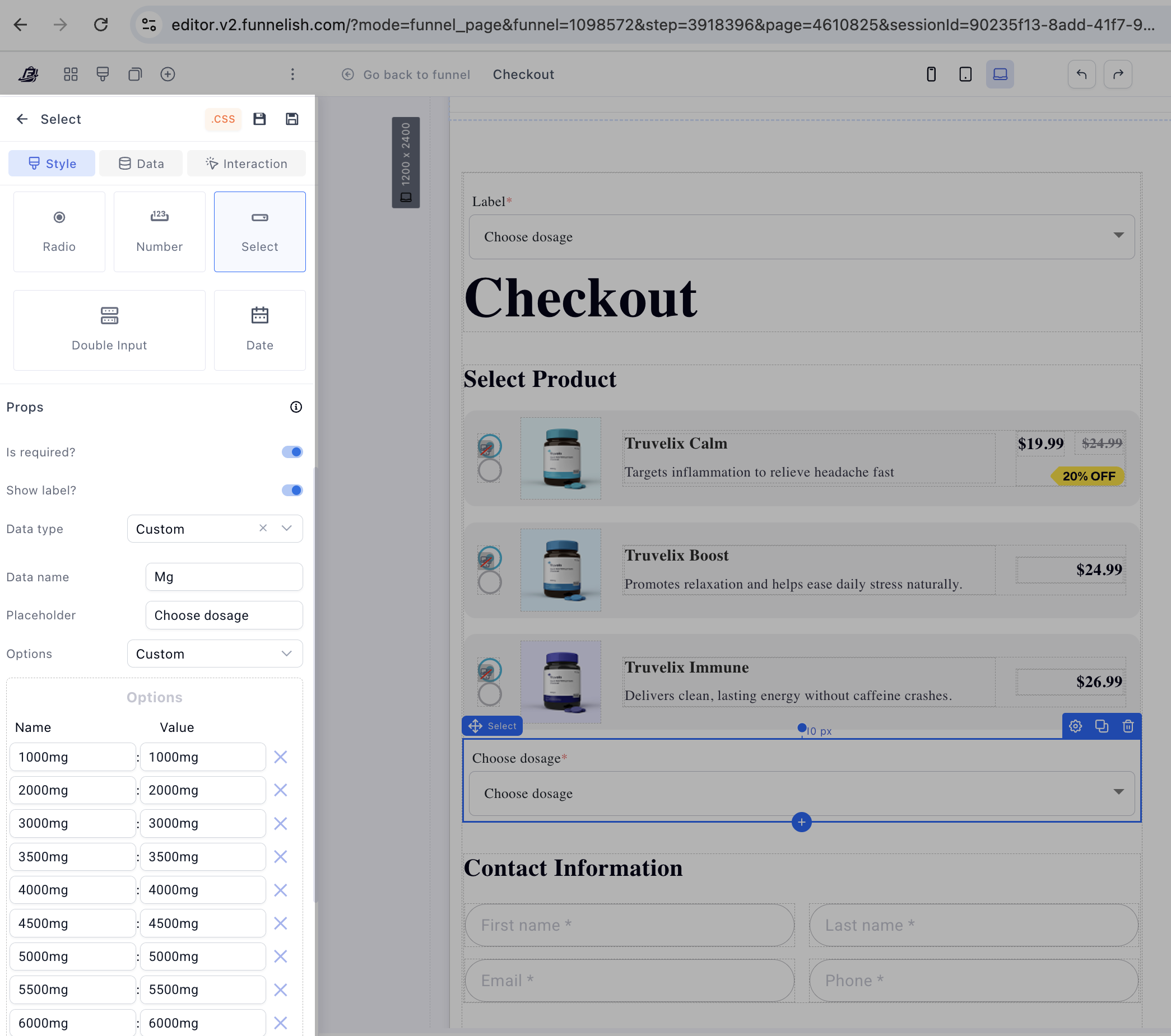 By moving the selection process to a dedicated funnel page, you can map custom form data directly to your Shopify backend.
