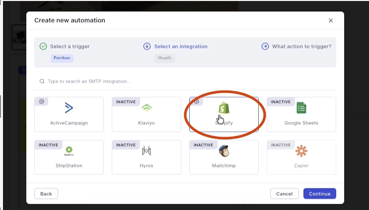 Then select Shopify here.
