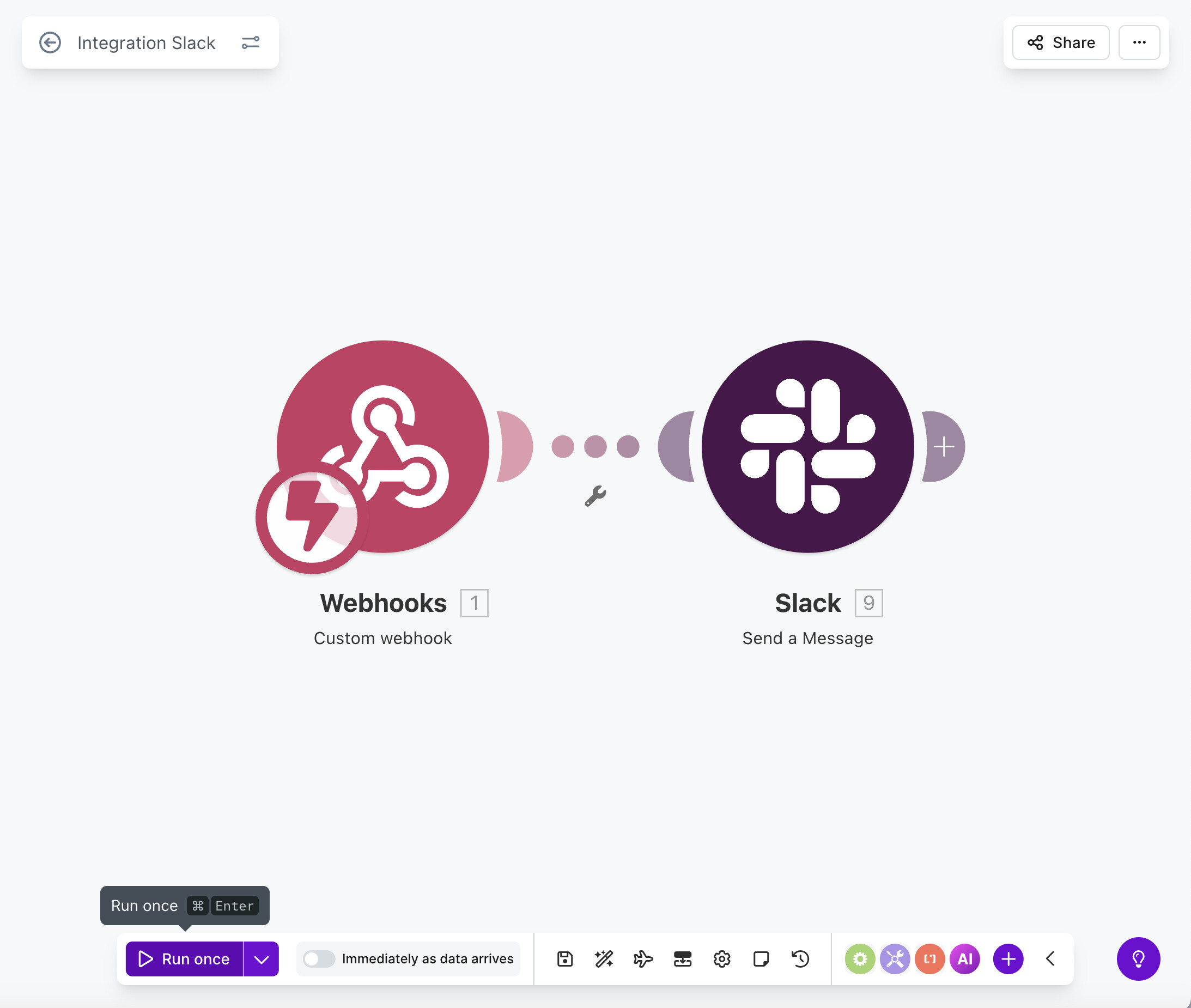 Go back to Make.com. Click the big purple Run once button at the bottom left.