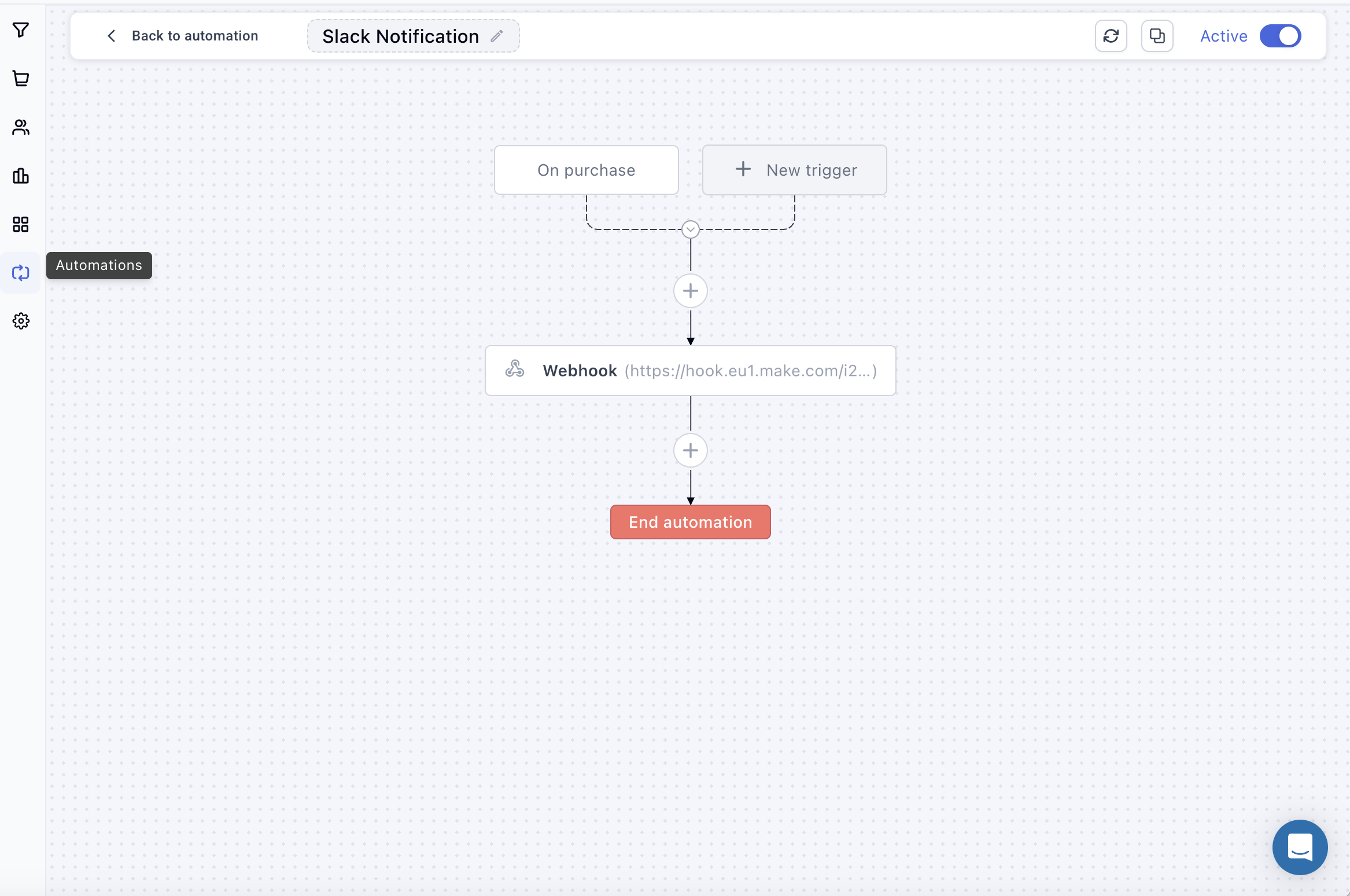 Step 2: Paste the URL into Funnelish > Automations