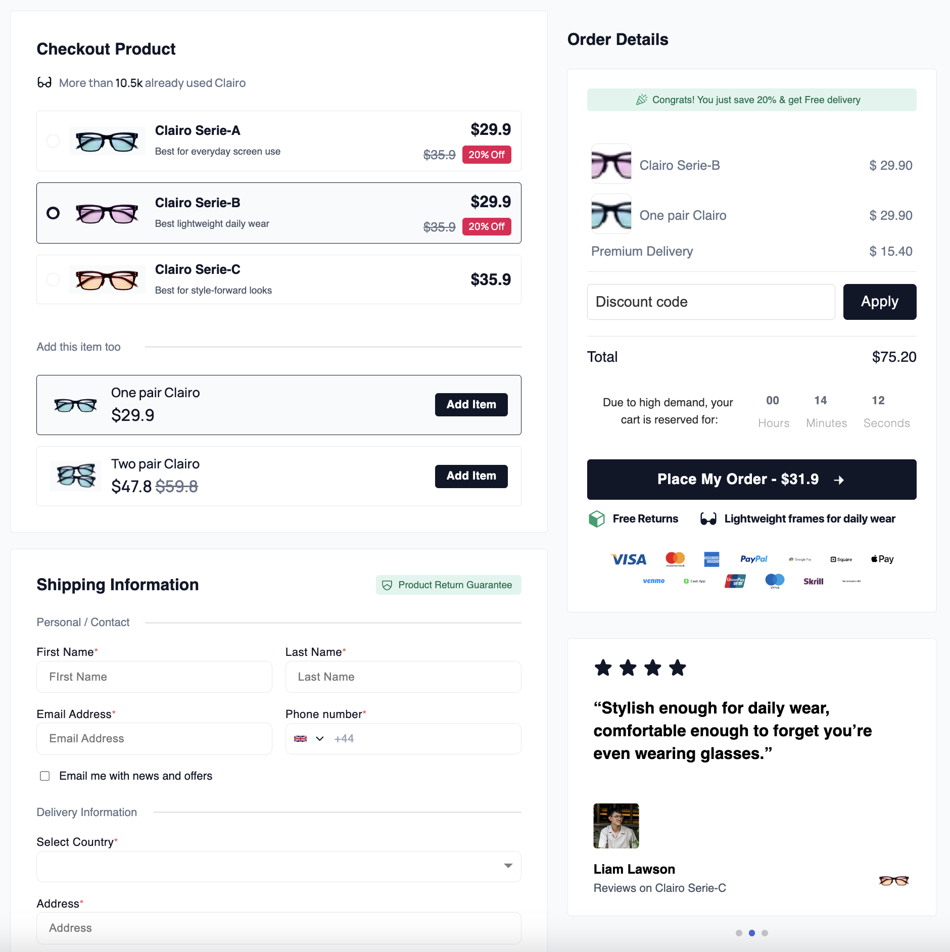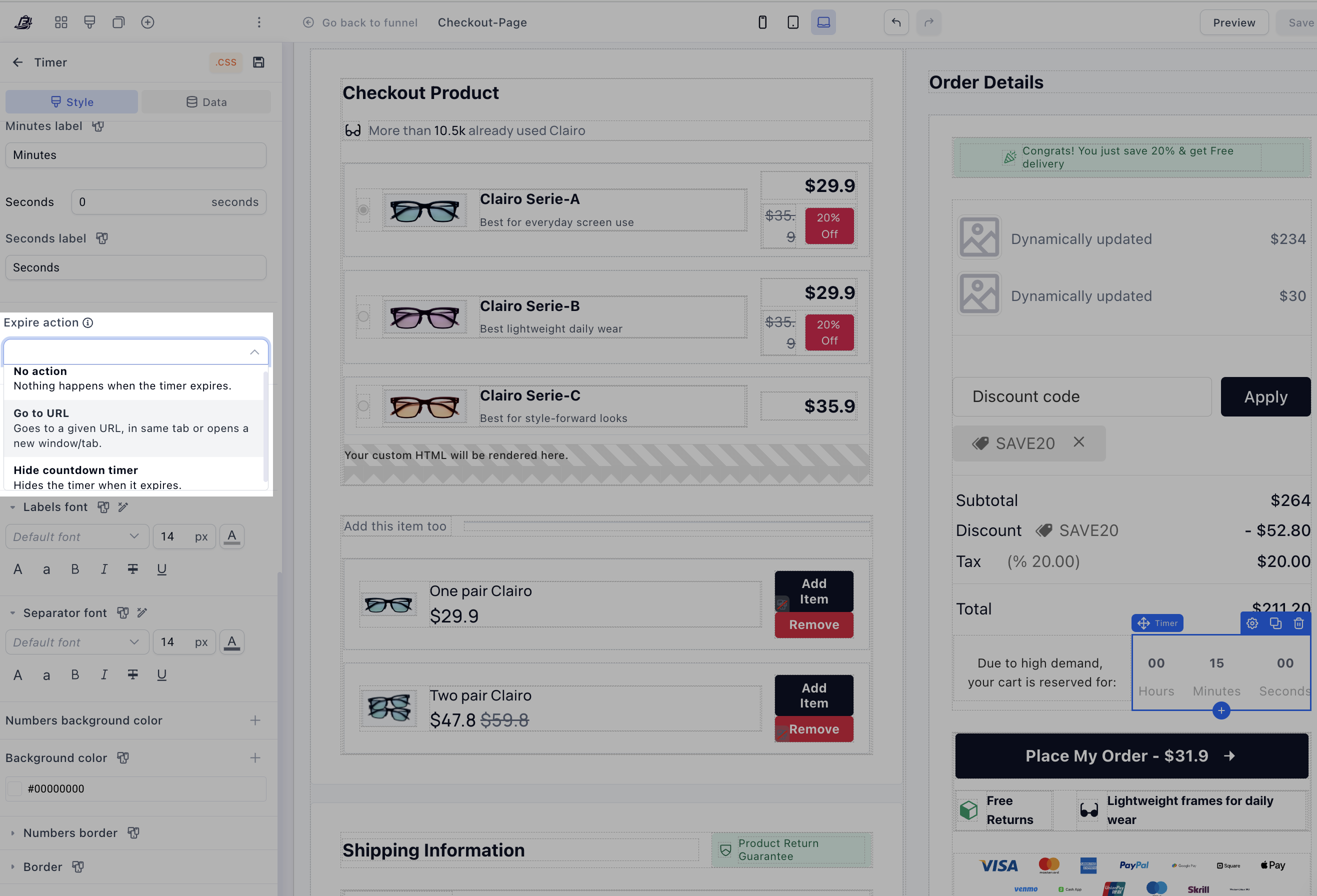 Instead, set the timer to automatically redirect them back to your main landing page (or a custom “Cart Expired” page). Yes…. it forces them to start over, but it proves your scarcity is 100% real. When they inevitably re-add the item to their cart, they won’t hesitate, they will sprint through the checkout.