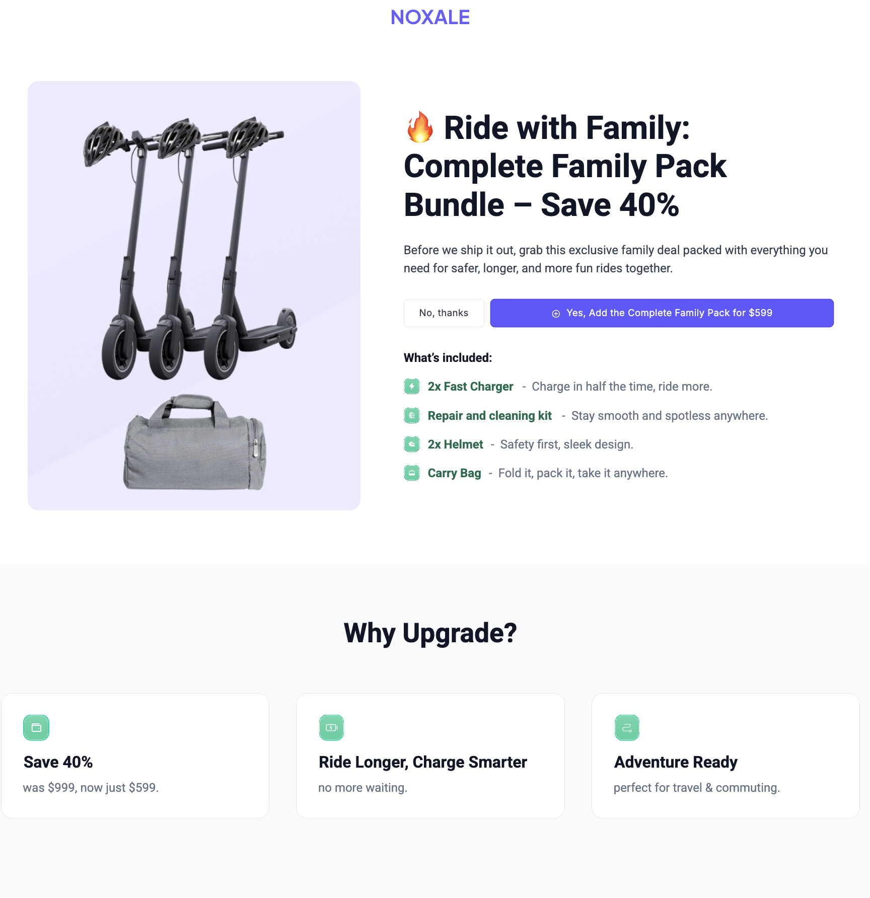 You’ve successfully guided a customer through your checkout. They bought your main product, and immediately after, they are hit with a One-Click Upsell (One-Time-Offer)—for example, an offer to buy three more units at a 30% discount.