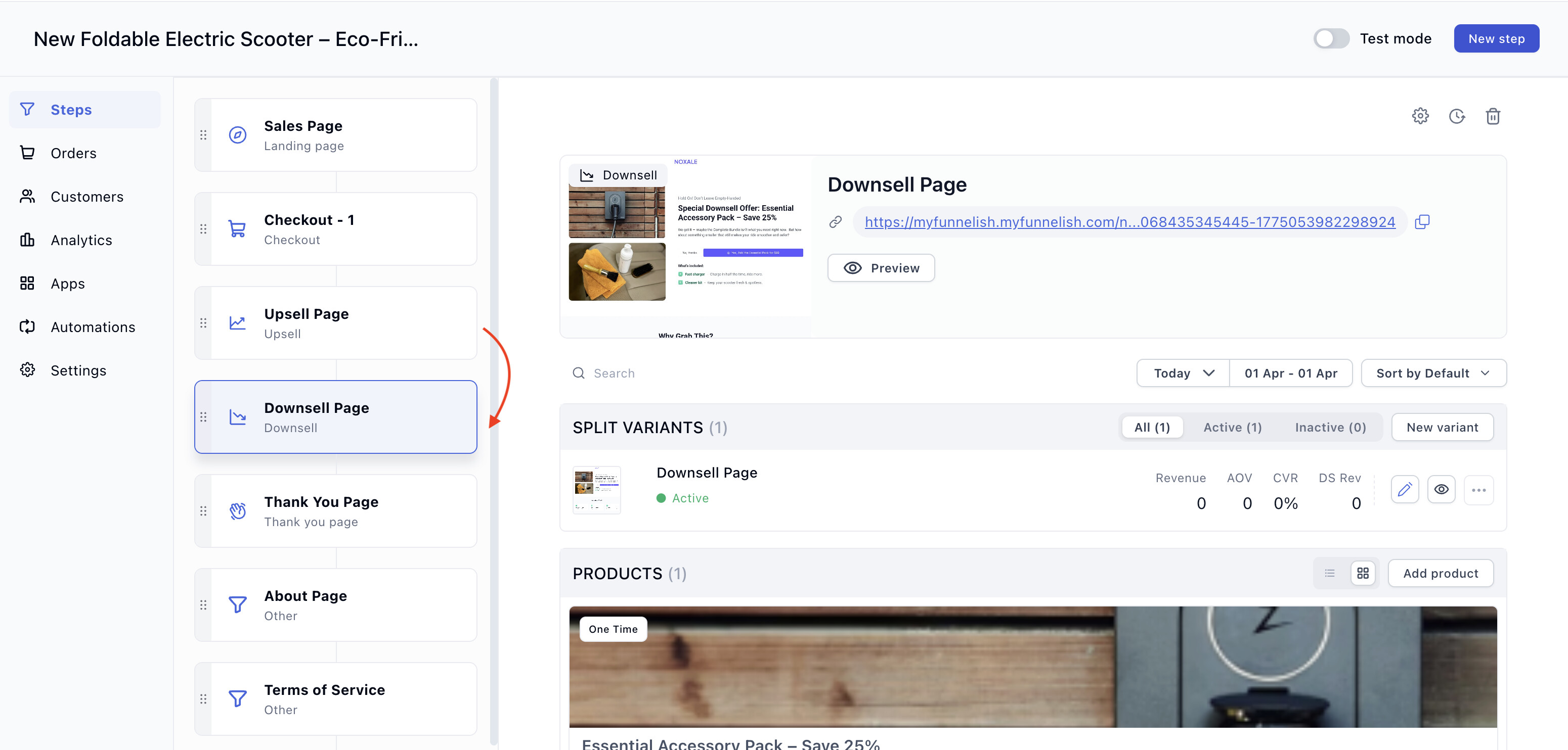 Downsell” logic in Funnelish takes about two minutes. You don’t need to mess with complex logic maps or coding; the platform inherently knows how to route the customer based on their clicks.