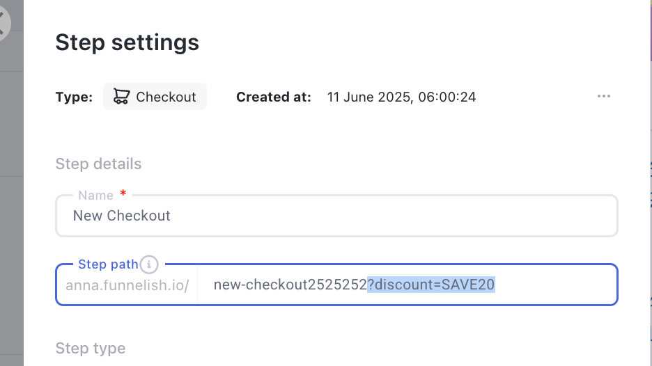 E.G. my discount is “SAVE20” so here’s how I’d edit Checkout 2 step path