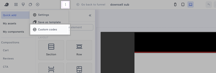Look for the Custom Codes section and add the tracking code provided by your software here. This ensures the tracking code is implemented on all relevant funnel pages.