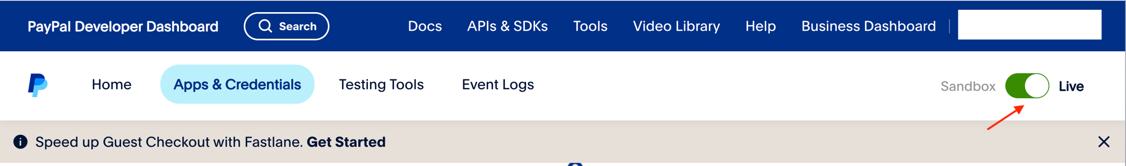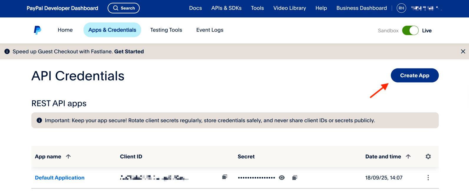 2. Go to: https://developer.paypal.com/dashboard/applications/live