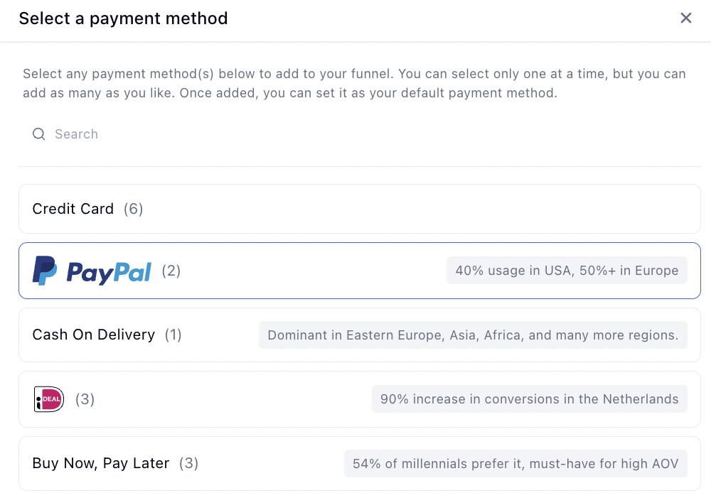 In the pop-up window, click PayPal.