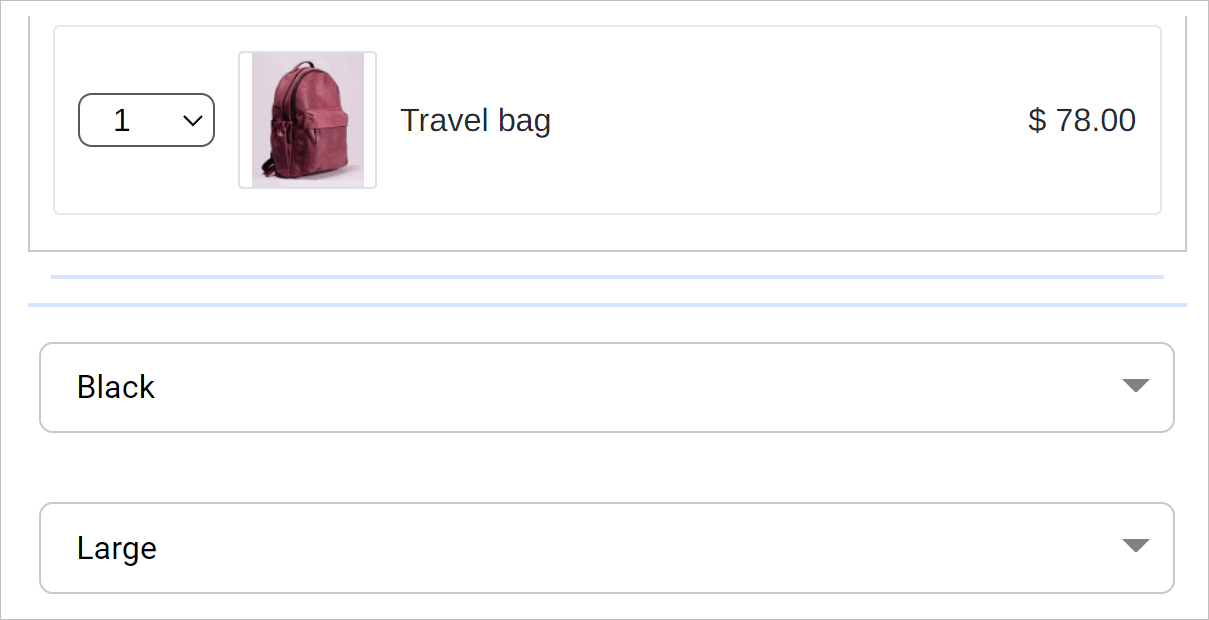 Select your product and choose specific options from your new dropdowns (e.g., “Black” and “Large”).