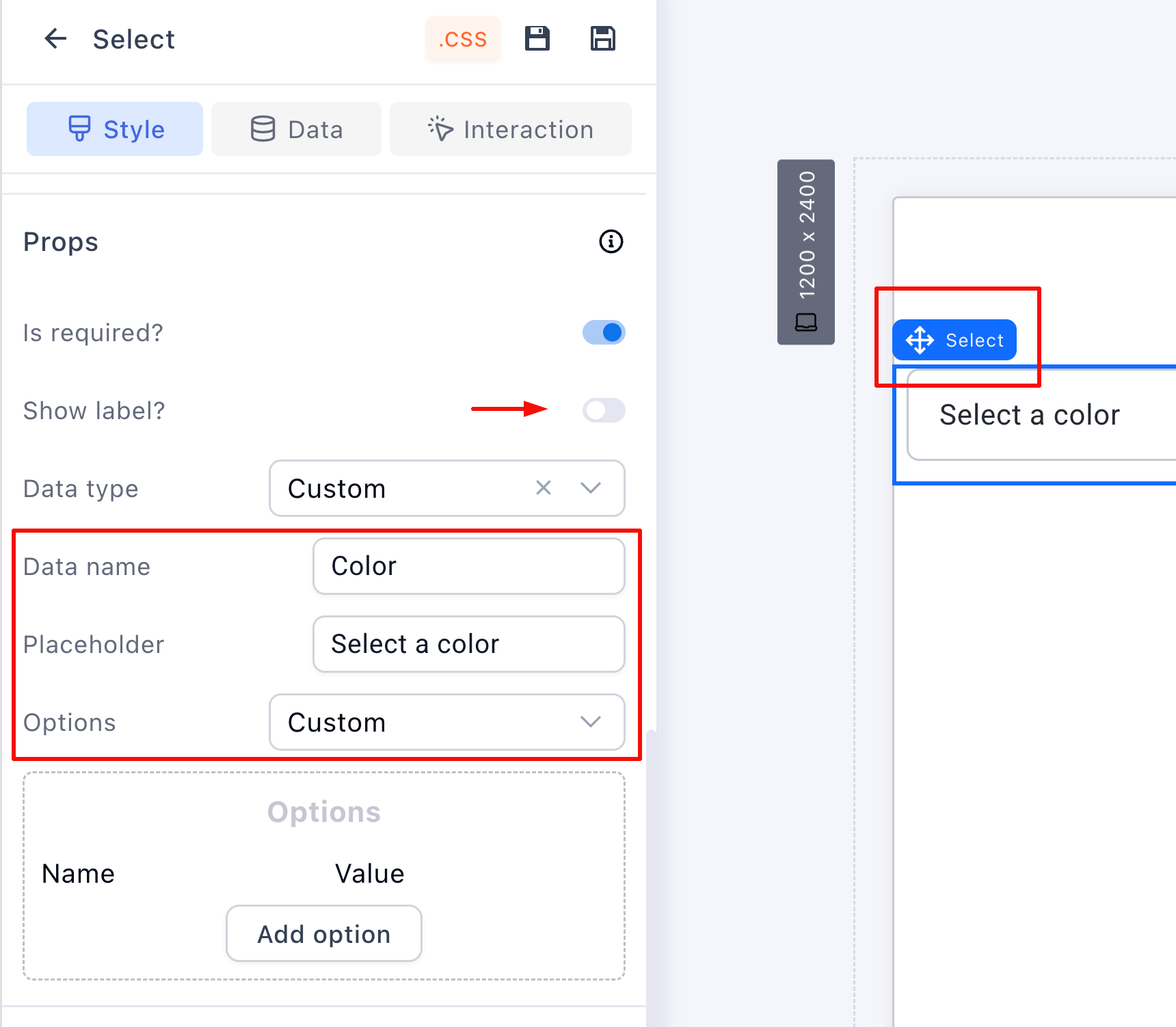 Pro-Tip: To save time, simply hover over your Color dropdown on the canvas and click the Clone (duplicate) icon. Then, just change the Data Name to