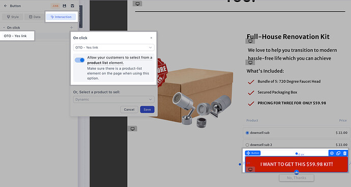 - Assign the "Add to my order" button as “OTO-YES LINK” and link it with the exact product like shown in the example here: